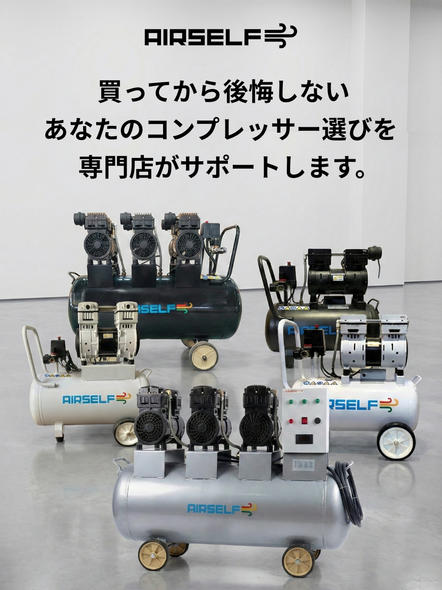 エアセルフ静音オイルレスコンプレッサー 50L 100V【予約商品2月上旬入荷予定】