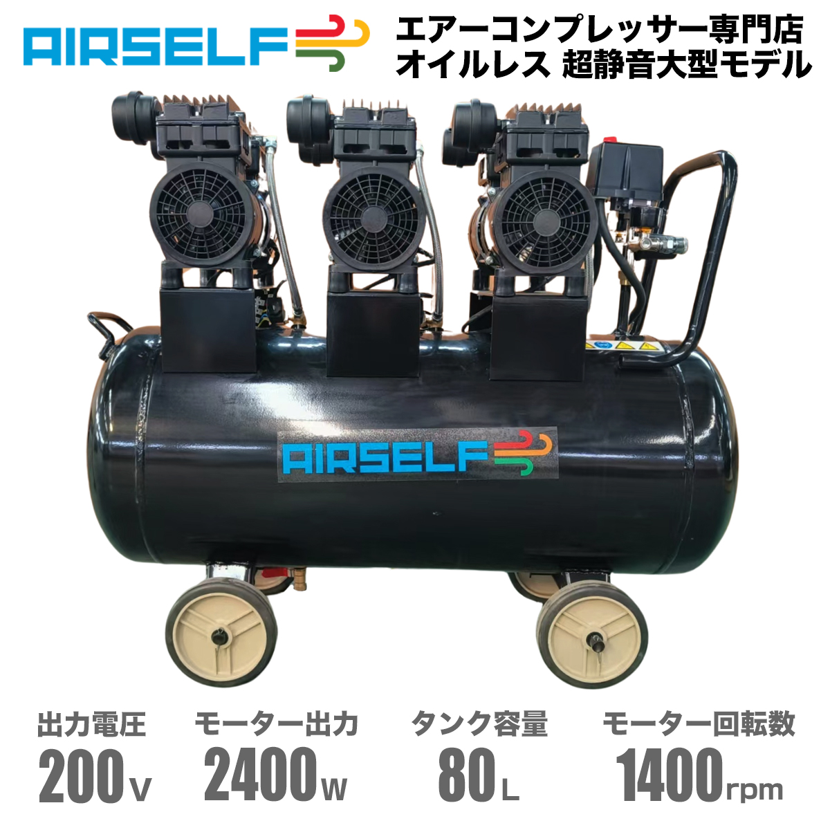 | セット内容 | 80L200Vエアーコンプレッサー本体・カプラー・エアクリーナー・エアホース(1.5メートル)・エアダスターセット・シールテープ・ノーパンクゴムタイヤ×4・ボルト各種・日本語説明書(図説入り) |