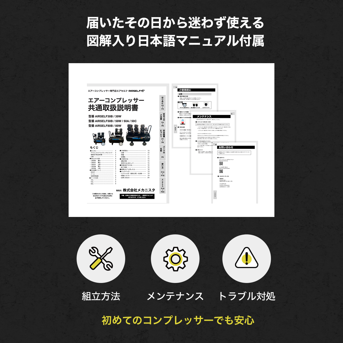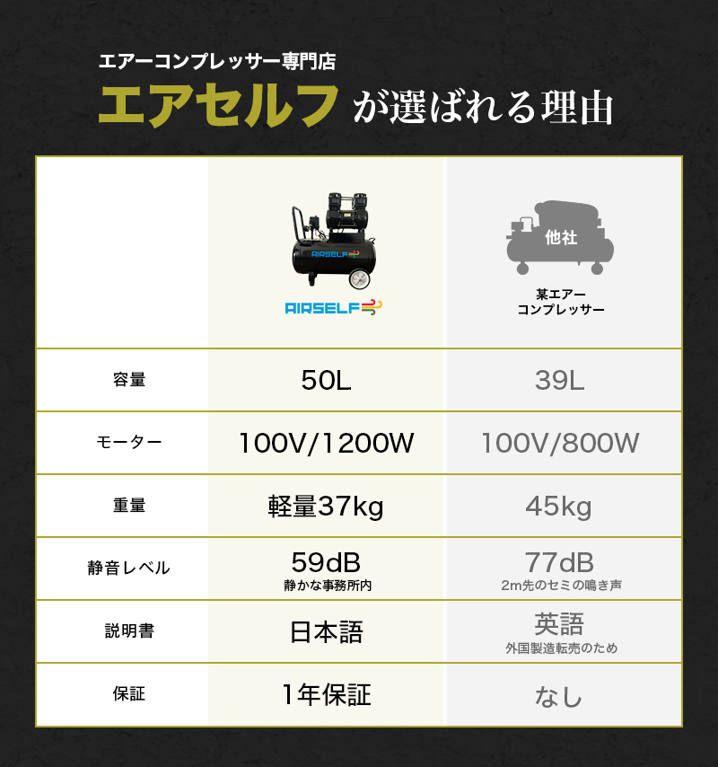作業は、季節を選んでくれません。真夏の屋内作業から、氷点下の屋外現場まで、使えるかどうかは道具次第です。エアセルフは、使用環境の変化を前提に設計されたエアコンプレッサー。温度差のある現場でも安定した運転を想定し、日常作業を止めないことを重視しています。あなたは季節に振り回されず、いつもの作業を快適に行う。一年を通して現場を支えるエアです。