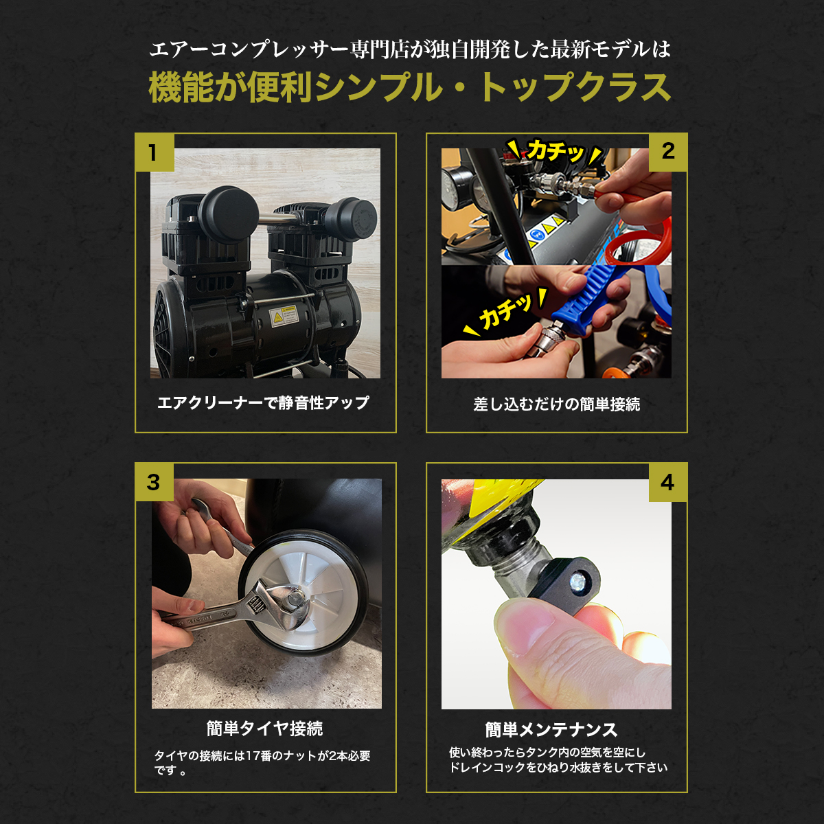 エアツールもしっかり動きます。静かで強くて満足です。